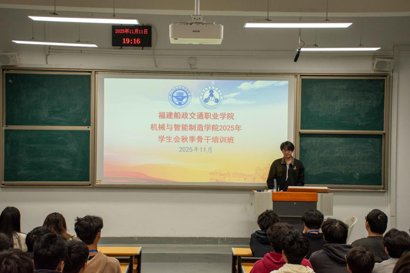 為深入學習貫徹黨的二十屆四中全會精神,落實習近平總書記關于教育、科技、人才工作的重要指示批示精神,筑牢學生骨干政治根基、提升綜合能力,2025年11月11日,福建船政交通職業(yè)學院機械與智能制造學院在福道園八號樓第一階梯教室啟動秋季學生骨干培訓班第一講。學院團委、學生會成員及各班級團支部學生骨干代表齊聚一堂,共學精神、共話使命。