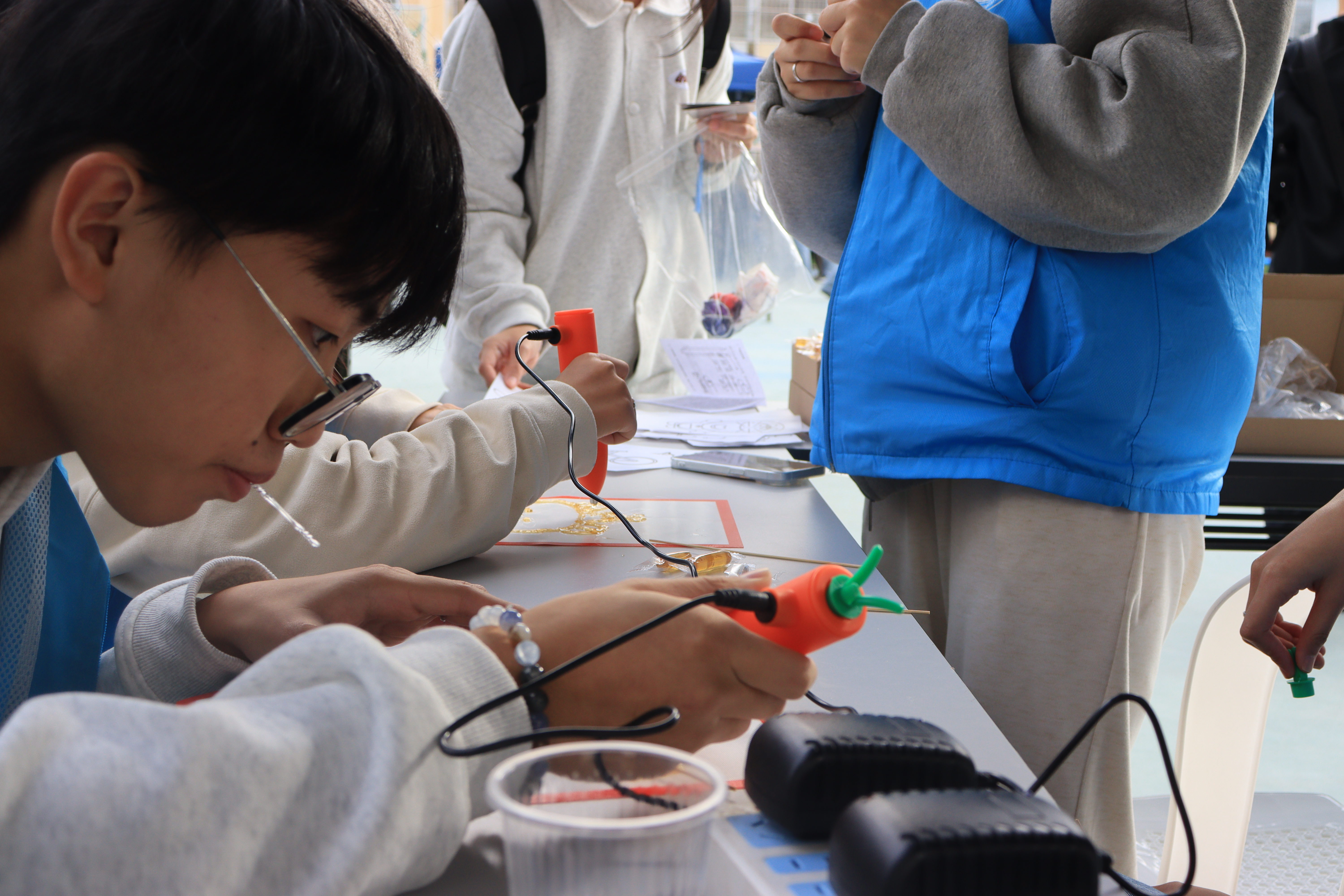 游戲區(qū)里,楹榫對章的古詩詞對決、雅韻辯真的非遺推理、聽鞠競技的古風(fēng)蹴鞠趣味十足,大家在歡聲笑語中解鎖傳統(tǒng)文化密碼;手作區(qū)更是人氣爆棚,DIY糖畫勾勒傳統(tǒng)紋樣、扎染創(chuàng)作獨(dú)特肌理、串珠DIY打造專屬國風(fēng)飾品,非遺技藝在指尖煥發(fā)新生。同舟共濟(jì)、心心相印等團(tuán)隊(duì)游戲中,室友們并肩作戰(zhàn)、默契闖關(guān),集齊印章兌換抽獎(jiǎng)資格,驚喜好禮讓快樂翻倍!
