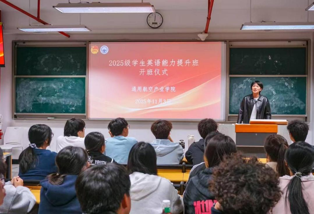 為全面提升學生英語綜合能力與素養(yǎng),助力學子備戰(zhàn)大學英語四級考試,11月3日,通用航空產業(yè)學院英語能力提升班開班儀式在藝新樓順利舉行。學院領導及專業(yè)負責人參加本次活動。