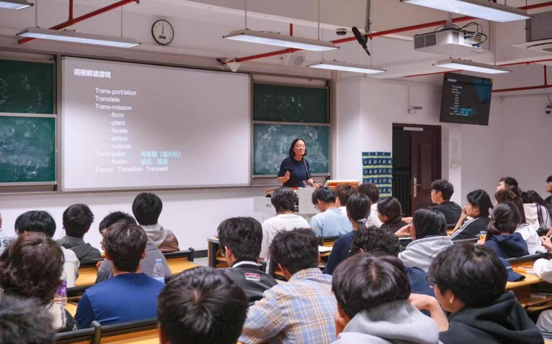 隨后,陳瑞娟老師呈現了一堂精彩課程。她從基礎語法講到詞根構詞法,通過“Transportation”等實例,幫助學生在理解句子結構的基礎上掌握詞匯記憶規(guī)律。同學們在活躍的課堂氣氛中實現了知識的融會貫通。
