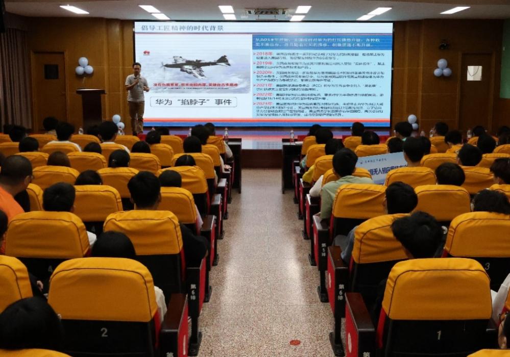 隨后肖老師列舉華為“掐脖子事件”,強(qiáng)調(diào)了工匠精神的重要性。我們作為航空相關(guān)從業(yè)人員,接觸科技最前沿的產(chǎn)物,更應(yīng)注重培養(yǎng)自身工匠精神,成為大國工匠。