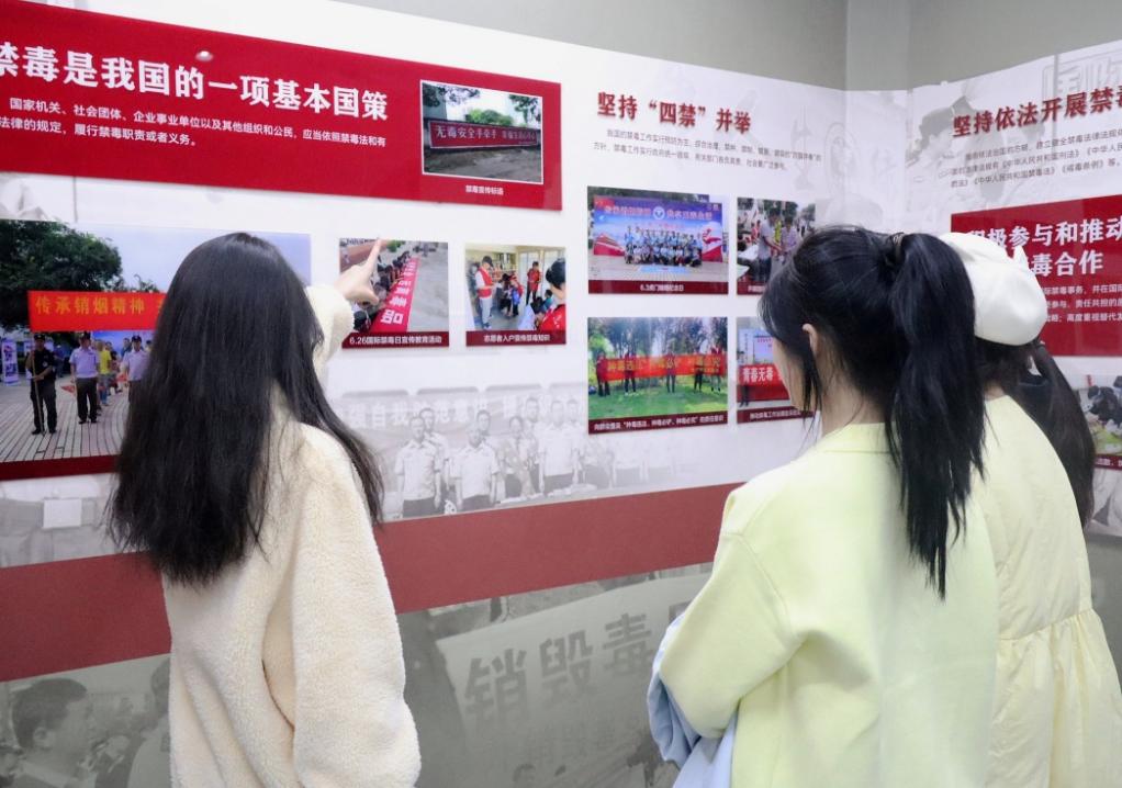 本次活動采用線下參觀形式,在工作人員的引導下,同學們依次參觀禁毒歷史、毒品認知、案例警示等多個展區(qū),通過文字資料、實物模型等多種形式,系統(tǒng)了解了傳統(tǒng)毒品與新型毒品的種類及偽裝形式?,F(xiàn)場工作人員講解典型案例,用觸目驚心的事實敲響警鐘,讓同學們直觀感受到禁毒斗爭的嚴峻性與緊迫性,大家紛紛表示,新型毒品的隱蔽性讓人防不勝防。現(xiàn)場參觀的同學神情莊嚴肅穆,圍繞禁毒知識交流討論,營造出濃厚的禁毒氛圍。