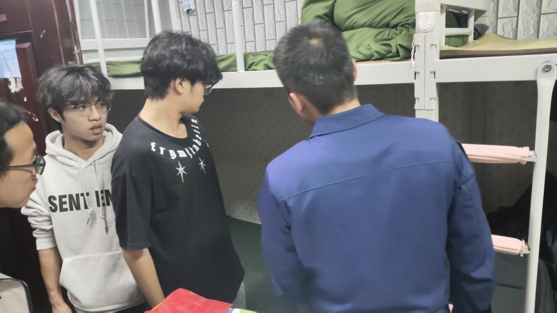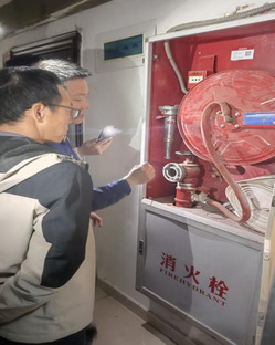 講座結(jié)束后,學(xué)院領(lǐng)導(dǎo)、丁偉濱及全體輔導(dǎo)員隨即深入學(xué)生宿舍,開展消防安全現(xiàn)場檢查與指導(dǎo)。丁偉濱結(jié)合消防救援實(shí)際經(jīng)驗(yàn),對宿舍內(nèi)可能存在的用電安全、物品堆放等隱患進(jìn)行了細(xì)致提醒,并現(xiàn)場演示和講解了消防栓的檢查要點(diǎn)與正確使用方法,將理論講解延伸至實(shí)地實(shí)踐,進(jìn)一步強(qiáng)化了師生的安全意識和應(yīng)急操作能力。