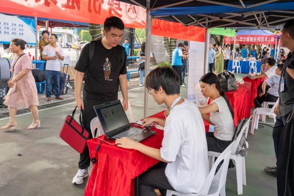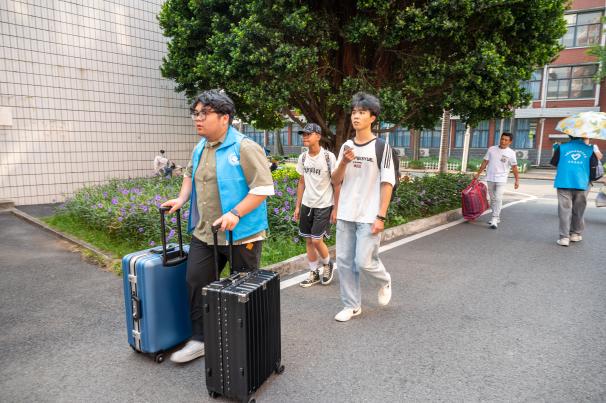 現(xiàn)場百余名校院兩級志愿者身著統(tǒng)一服裝,協(xié)助新生完成身份核驗、宿舍引導(dǎo)等服務(wù),耐心解答新生關(guān)于學(xué)業(yè)規(guī)劃、生活服務(wù)等方面的疑問。
