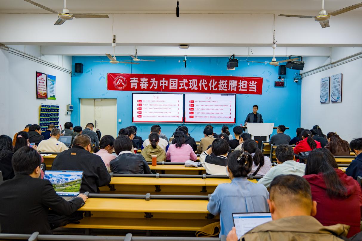 ??為深入學習貫徹黨的二十屆四中全會精神,引導廣大黨員教師深刻領(lǐng)會、準確把握核心要義與實踐要求,12月3日,信息與智慧交通學院舉辦“學習貫徹黨的二十屆四中全會精神”專題講座,由我院黨總支書記許友孝主講,全體教職工黨員參加學習。