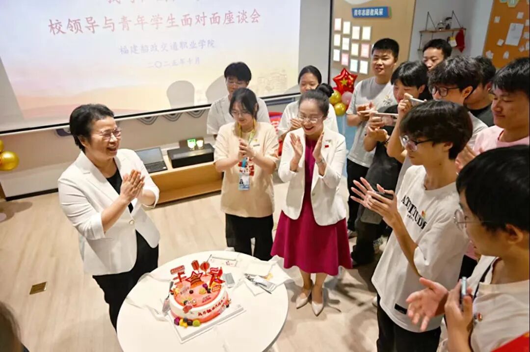 在青年之家,同學(xué)們圍繞專業(yè)發(fā)展、擇業(yè)方向、個(gè)人規(guī)劃及校園生活等話題踴躍發(fā)言;學(xué)院黨委副書記張輝與學(xué)院團(tuán)委書記陳慧認(rèn)真傾聽,對(duì)同學(xué)們提出的困惑逐一進(jìn)行詳細(xì)解答并開展深入交流。座談會(huì)上,張輝副書記與師生們共同為新中國成立76周年慶生,師生們高聲祝?!白鎳湛鞓贰?,現(xiàn)場(chǎng)氣氛高漲,溫馨的一幕為座談會(huì)畫上了圓滿的句號(hào)。